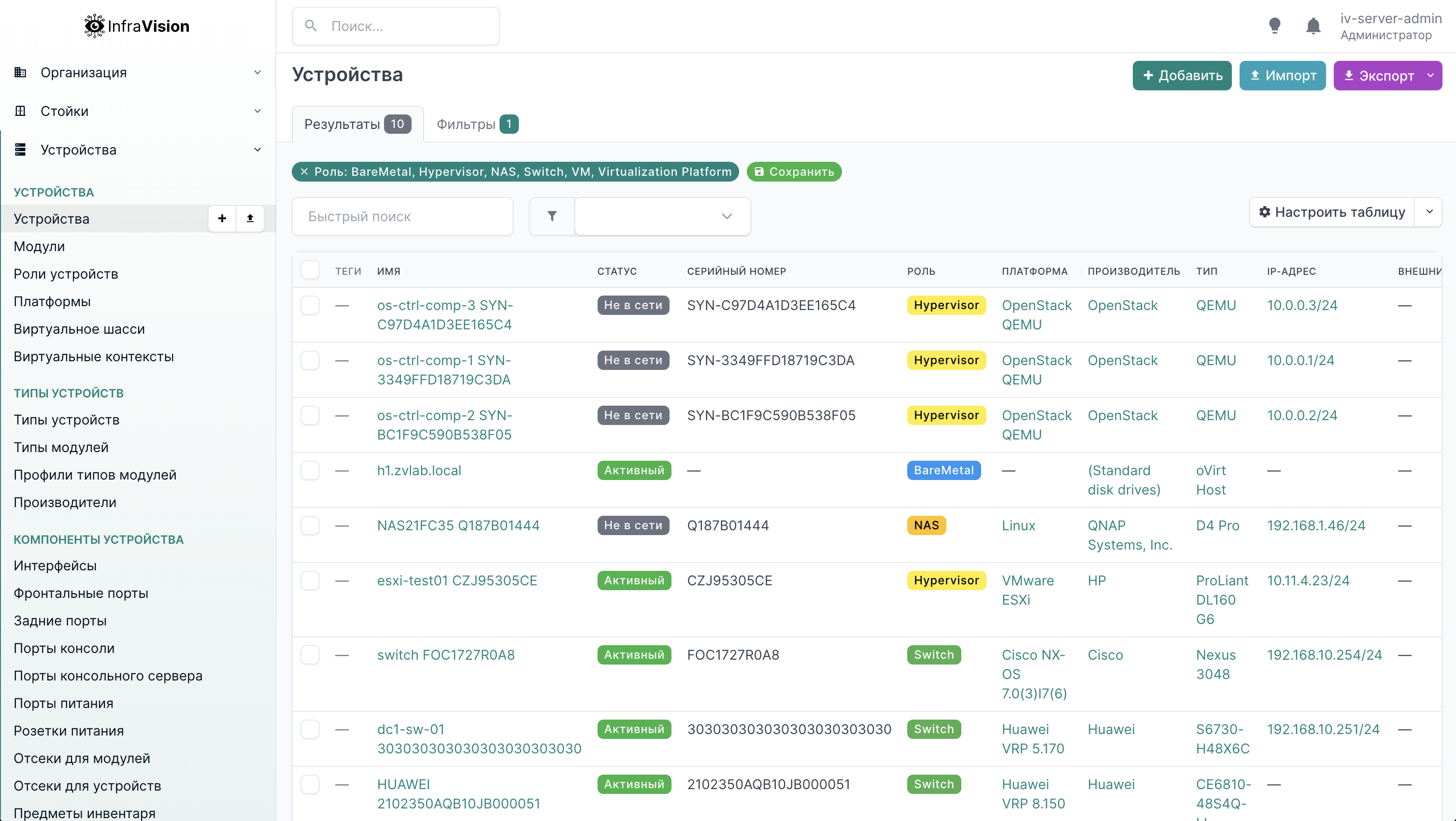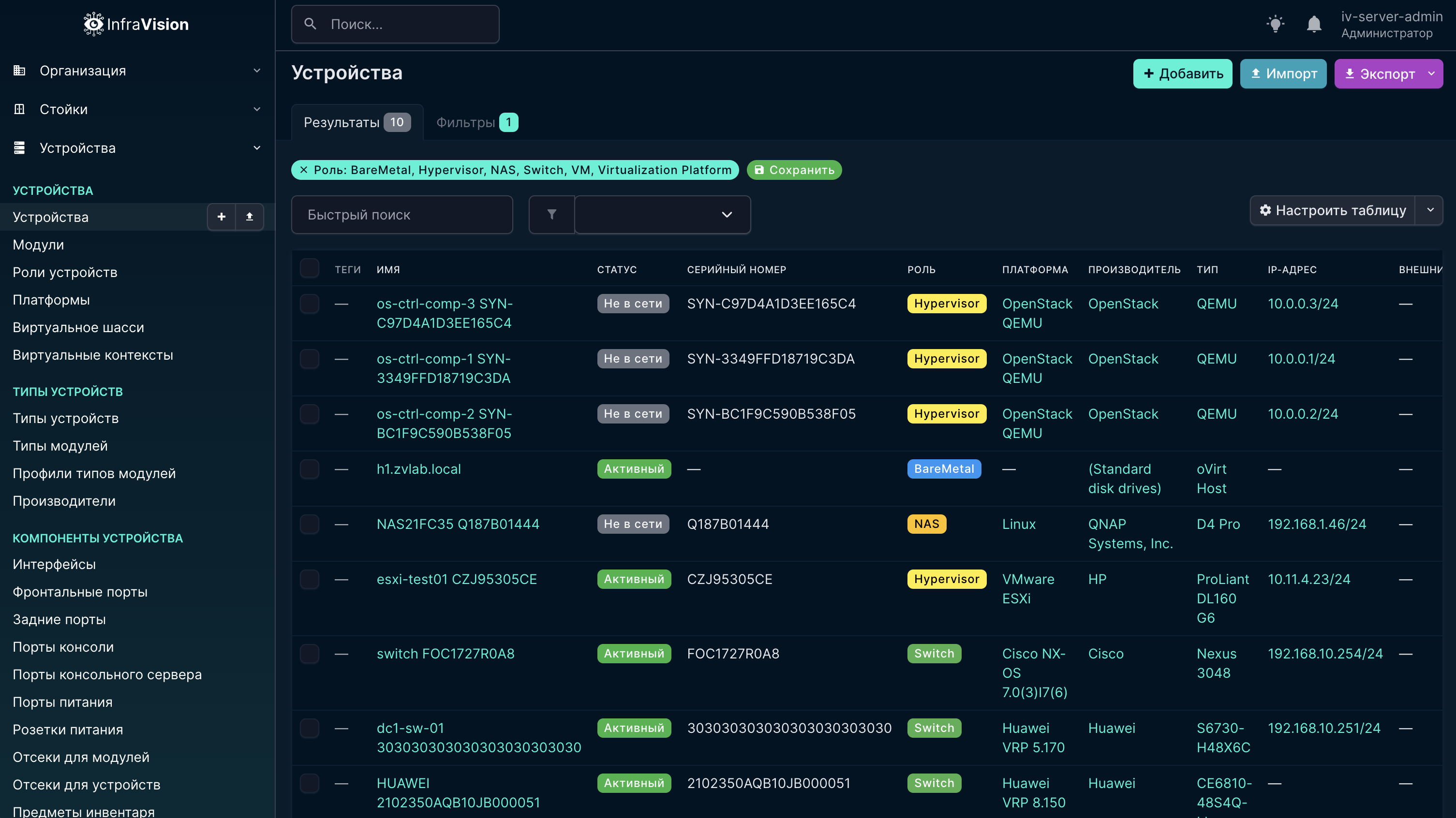 Создавайте единую централизованную базу, которая содержит актуальную информацию о элементах вашей ИТ-инфраструктуры. Полноценный IPAM, DCIM и ITAM в одной коробке